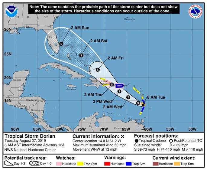 Tropical Shipping continues to monitor the path and intensity of Tropical Storm Dorian.